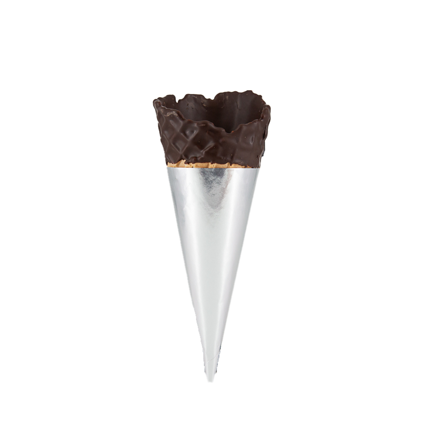 The Medium Dipped Silver Sleeved is a large 3 scoop waffle cone, dipped in our chocolate flavour coating which has been selected for its superior taste and stability, it will melt if kept too warm, with a large silver sleeve. Only available to collect or delivered as part of a “Pallet Order” as this is a “Fragile” item.