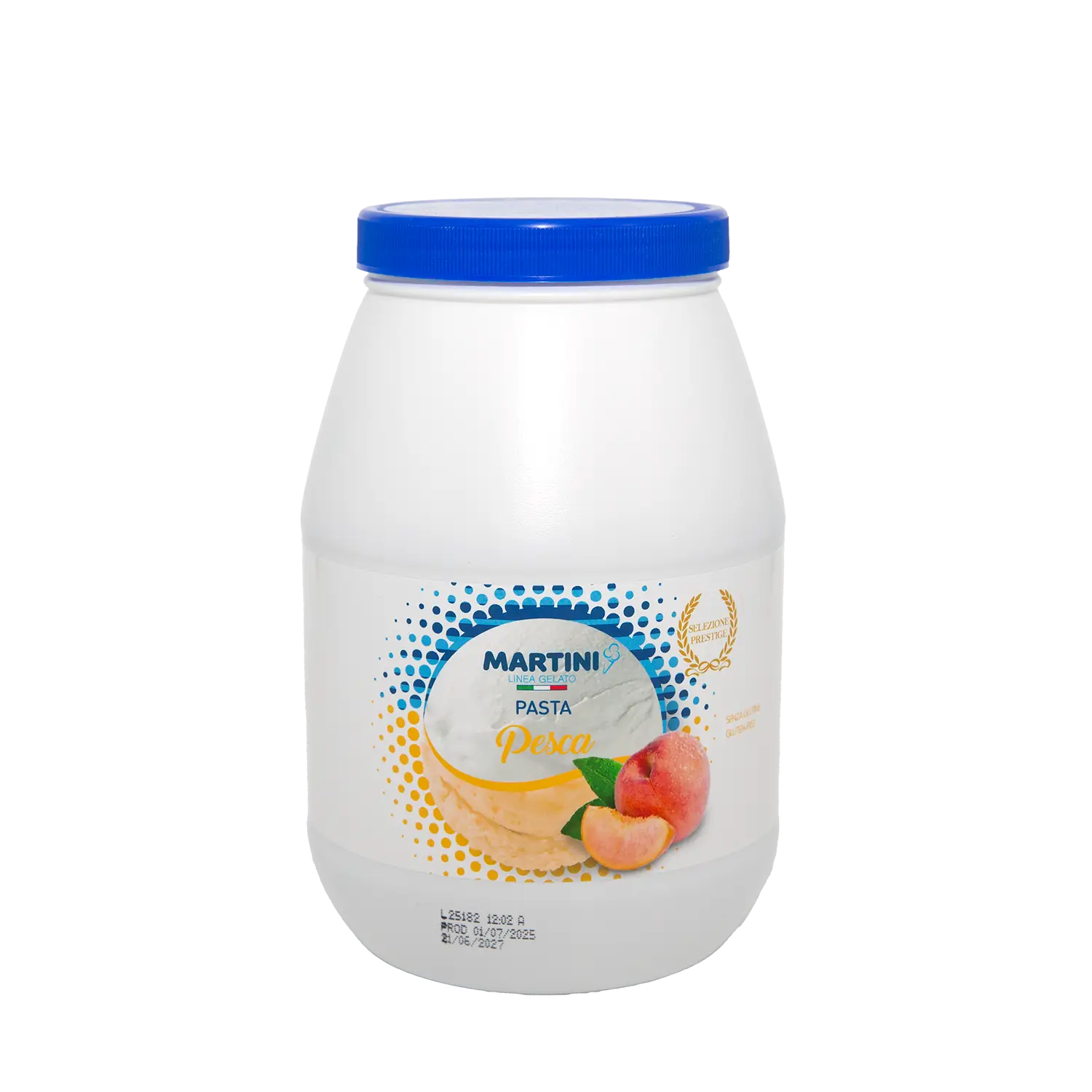 A punchy peach variegato produced with 50% peaches, with pulp and delicious candied pieces. Suitable for gelato, ice cream & bakery. Martini Gelato is a specialized brand under the Italian food group Unigrà, created to serve the needs of professional artisanal gelato makers. It offers a comprehensive range of high-quality ingredients and semi-finished products tailored for gelato production.