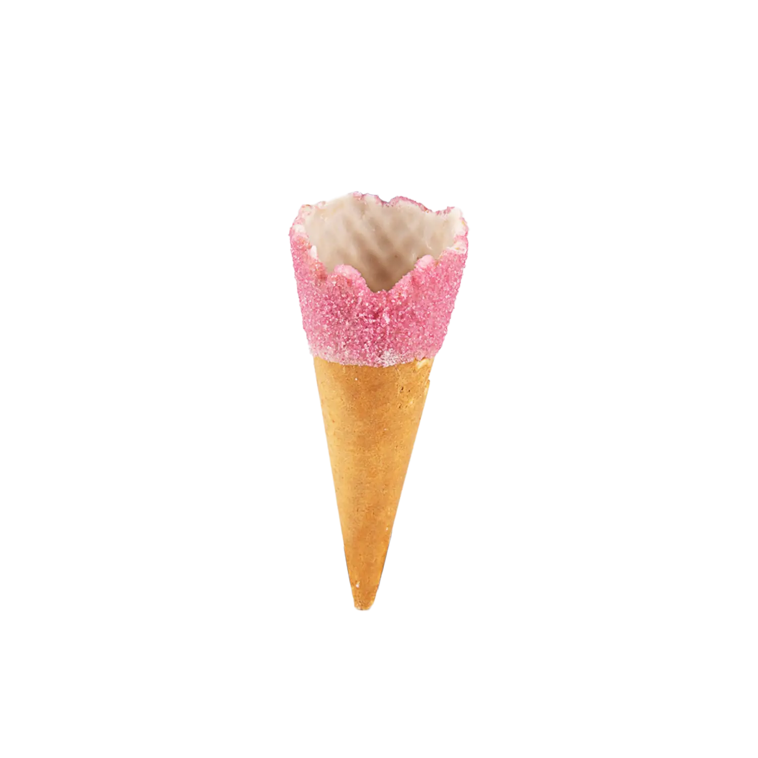 The Smoothy® Cassino Cotton Candy is a small smooth 1 scoop waffle cone, with pink sugar decoration on a white chocolate coating (NB all our sugar is AZO free). Only available to collect or delivered as part of a “Pallet Order” as this is a “Fragile” item.