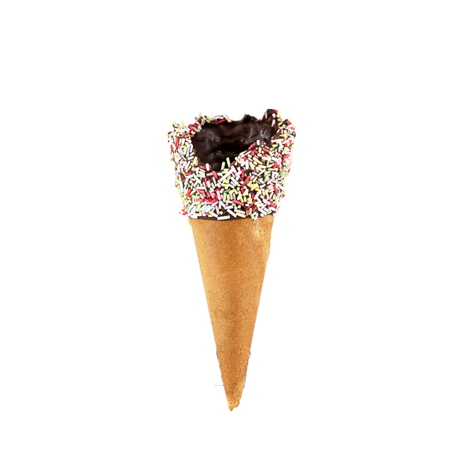 The Smoothy® Cassino Fun is a small smooth 1 scoop waffle cone, with rainbow coloured sugar strand decoration on a dark chocolate coating (NB all our sugar strands are AZO free). Only available to collect or delivered as part of a “Pallet Order” as this is a “Fragile” item.