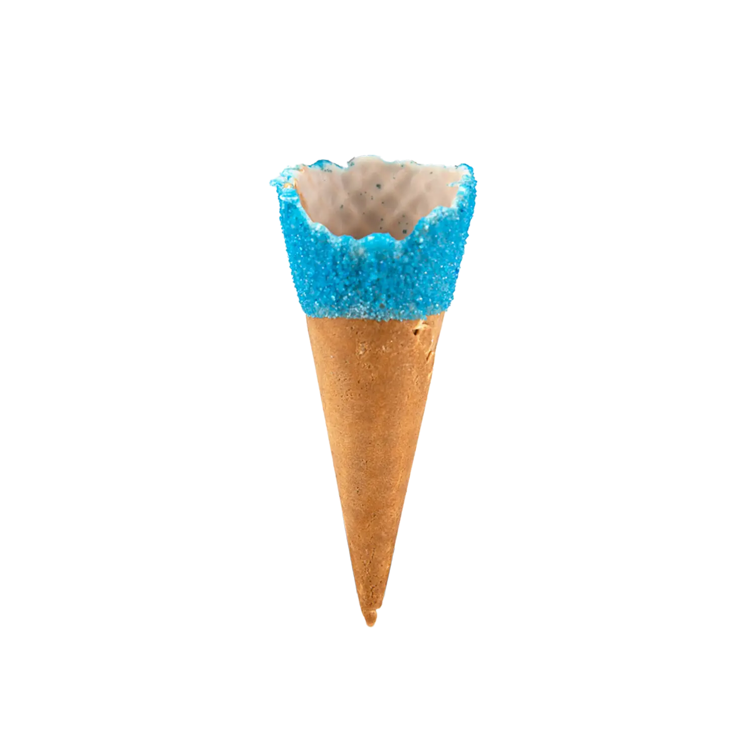 The Smoothy® Milano Tropical is a tall smooth 2 scoop waffle cone, with blue sugar decoration on a white chocolate coating (NB all our sugar is AZO free). Only available to collect or delivered as part of a “Pallet Order” as this is a “Fragile” item.