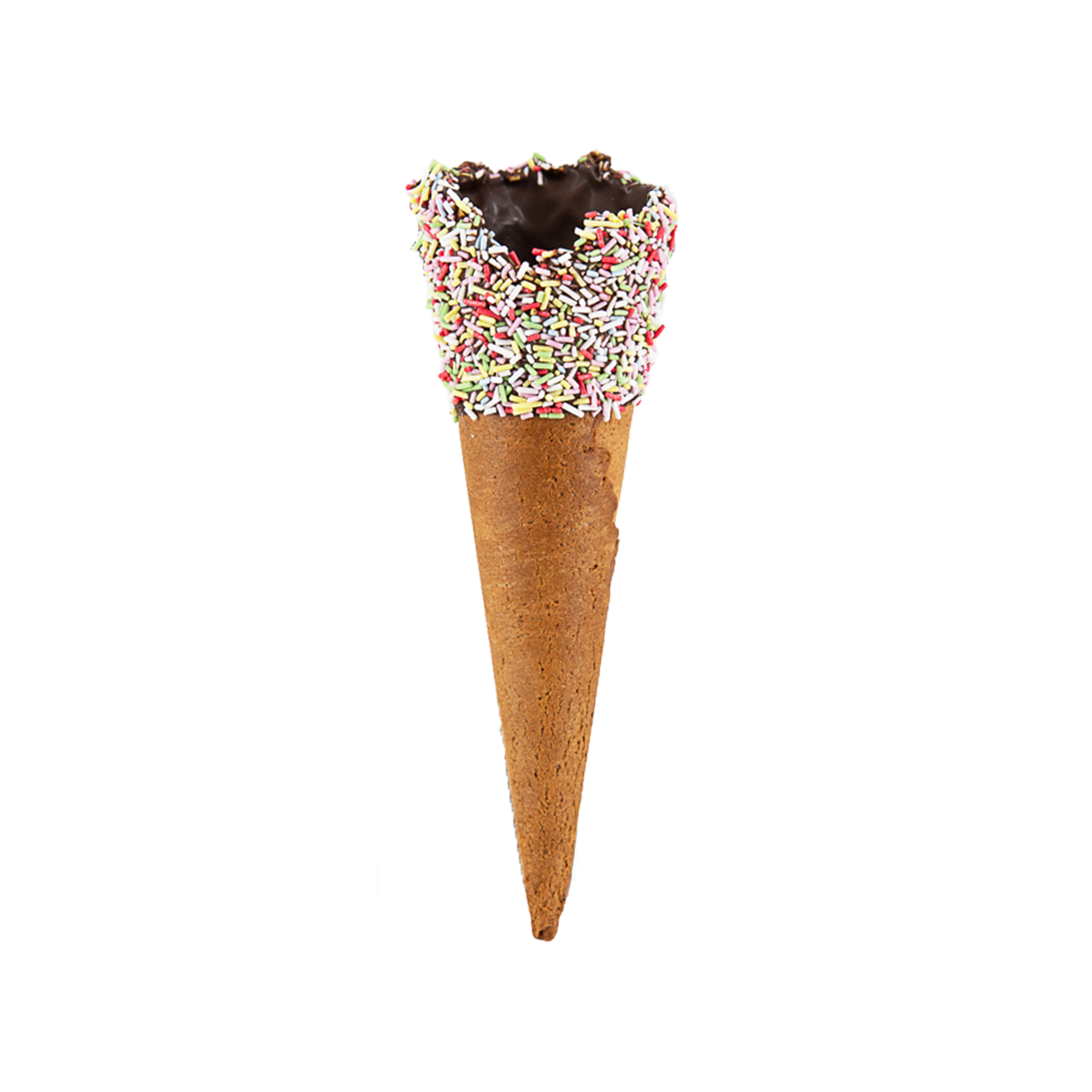 The Smoothy® Palermo® Fun is a smooth 1 scoop waffle cone, with rainbow coloured sugar strand decoration on a dark chocolate coating (NB all our sugar strands are AZO free). Only available to collect or delivered as part of a “Pallet Order” as this is a “Fragile” item.