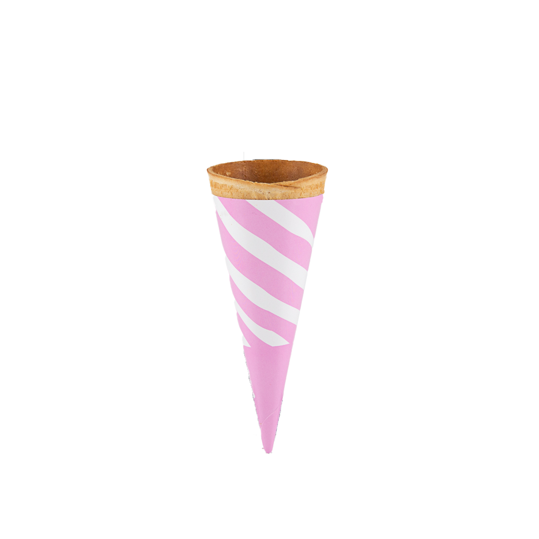 The Sugaco® Pink & White Sleeved is a small 1 scoop sugar cone, with a medium pink & white sleeve. Only available to collect or delivered as part of a “Pallet Order” as this is a “Fragile” item.