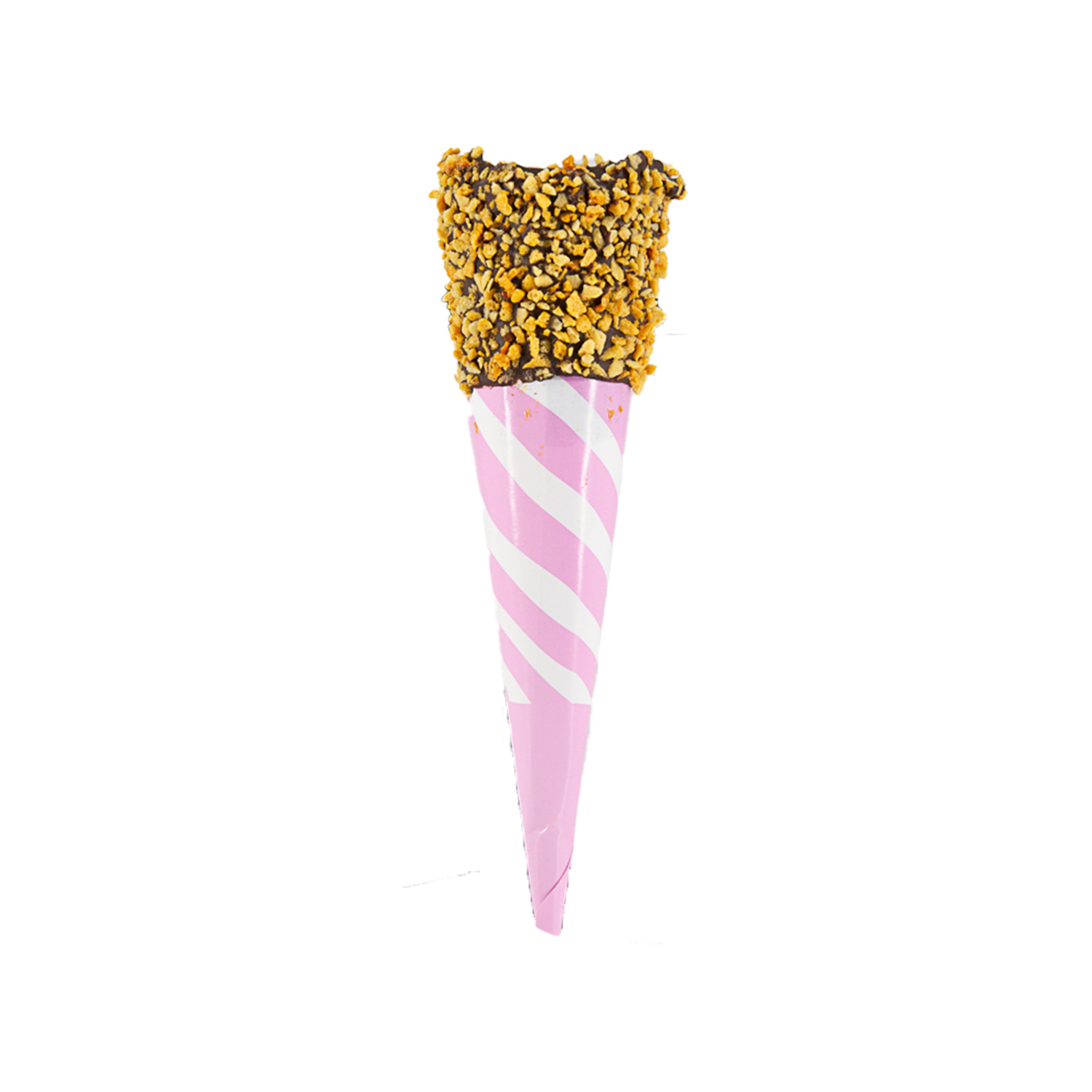 The Torino Honeycone Pink & White Sleeved is a tall 1 scoop waffle cone, with a honeycomb decoration on a dark chocolate coating for that sweet crunch, with a short pink & white sleeve. Only available to collect or delivered as part of a “Pallet Order” as this is a “Fragile” item.